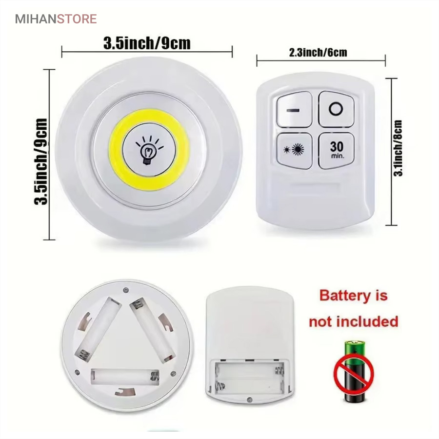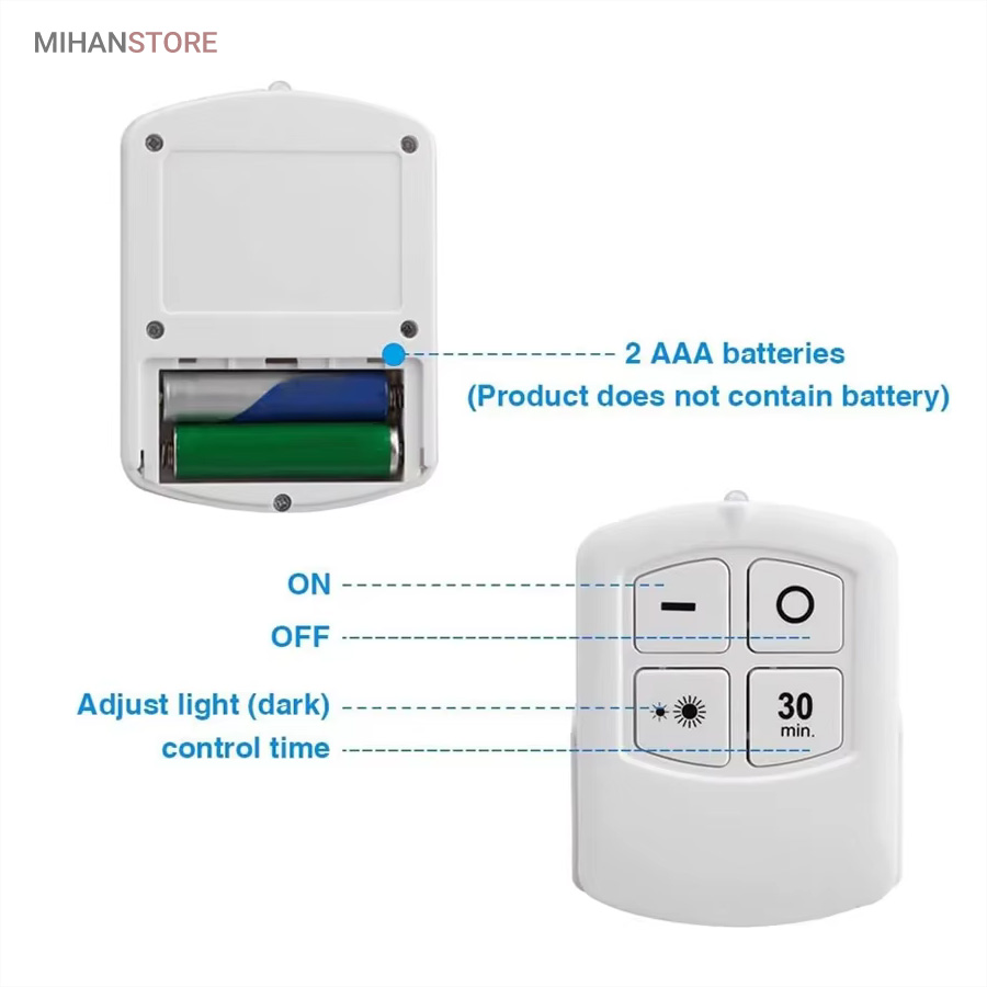 چراغها با استفاده از کنترل از راه دور با برد ۵ تا ۱۰ متر یا به صورت دستی از طریق فشردن قسمت مرکزی هر چراغ روشن و خاموش میشوند. در نتیجه حتی اگر چراغ در مکان مرتفع یا دور از دسترس نصب شده باشد بهراحتی میتوان از راه دور آن را کنترل کرد. طراحی بدون سیم باعث شده است که این چراغها برای نصب در هر مکانی مناسب باشند. نیازی به هیچگونه سیمکشی یا اتصال برق نیست؛ تنها کافیست ۳ عدد باتری AAA (برای هر چراغ) تهیه کنید و آن را در جای دلخواه بچسبانید.